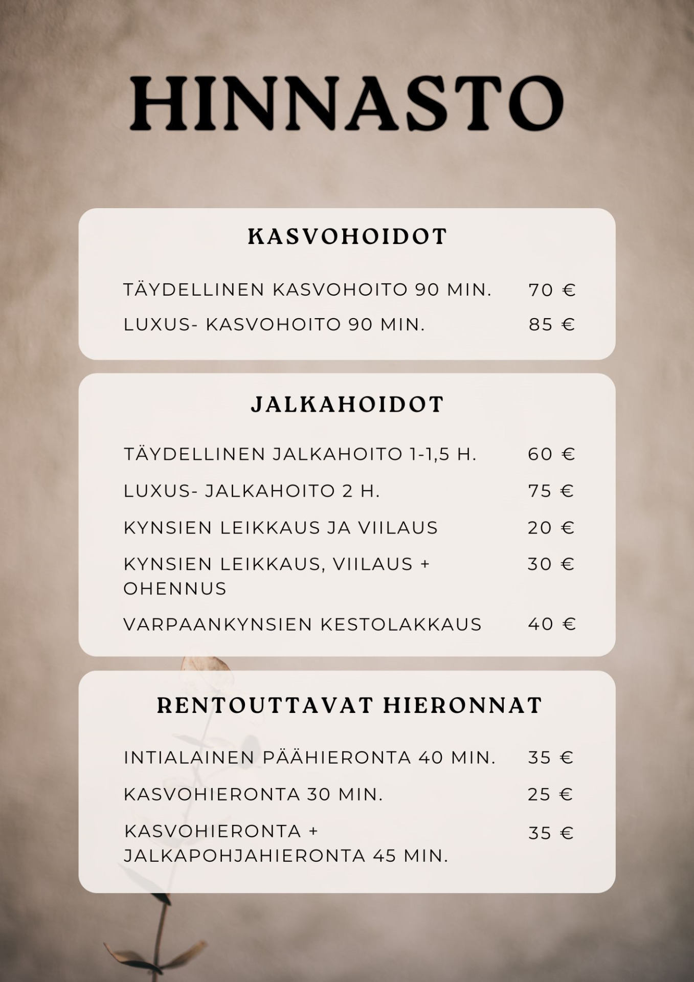 MaiLai Design -myymälän yhteydessä toimiva Kauneushoitola Maija tarjoaa rauhallisen hetken arjen keskelle kauniissa ympäristössä. Hoitolassa yhdistyvät laadukkaat ihonhoitopalvelut, yksilöllinen palvelu ja tarkkaan valitut tuotteet, jotka tukevat kokonaisvaltaista hyvinvointia.